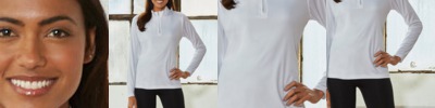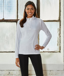 100% micro-polyester • 4 oz. • moisture-wicking • UPF 30+ protection • pill-resistant • snag-resistant • feminine fit • self-fabric collar • clear rubber zipper pull on concealed zipper • tagless • Sizes: S-3XL