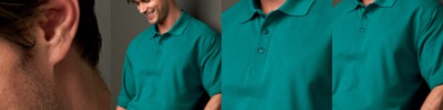 easy-care 60% cotton/40% polyester • 5.6-oz. • double-needle top-stitching • half-moon patch • split tail • Sizes: XS-3XL