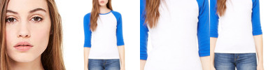 5.3 oz./yd²; 100% cotton ; Contrast color set-in collar and 3/4 raglan sleeves; Single needle topstitched back neck; Double needle sleeve and bottom hems; Tear away label; Quarter-turned to eliminate center crease; Cpsia tracking label compliant;