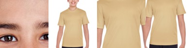 3.5 oz.,100% polyester interlock; Moisture-wicking and UV protection properties; Team fit; Heat-sealed label; Cationic dyes to ensure superior brightness and excellent color fastness;