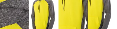 6.7 ounce, brushed back 90% polyester/10% spandex knit * Soft brushed back poly/spandex knit offers 4-way stretch * Wicks Moisture * Heat sealed label * Scuba hood with drawcord on sizes S-3XL only * Contrast color front panel and hood lining * Raglan sleeves with thumbholes for warmth * Front pouch pocket * Open bottom