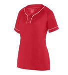 100% polyester propelit micromesh wicking knit * Wicks moisture * Ladies' fit * Tagless label * Two-button placket * Contrast color piping * Raglan sleeves