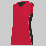 92% polyester/8% spandex wicking pinhole mesh * Wicks Moisture * Ladies' fit * Tagless label * V-neck collar * Contrast color inserts * Set-in sleeves