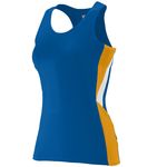 100% polyester wicking knit * Wicks Moisture * Ladies' fit * Tagless label * Contrast color V-neck collar * Contrast color inserts * Designed to be NFHS compliant